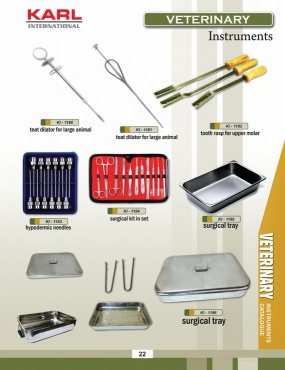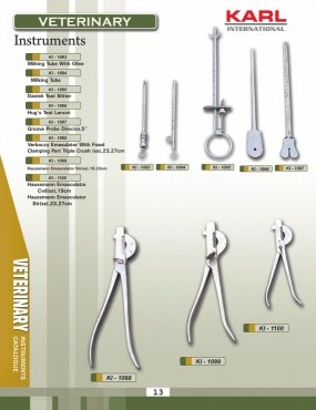 We are manufactrures and exporters of Veterinary Instruments and Surgical instruments. KARL International is one of the leading manufacturers & Exporters of Veterinary Instruments of all kinds from Pakistan including Castrating Equipment and Nipple Drinkers in stainless steel/brass material. We are in a position to supply Veterinary Instruments of all types at competitive prices.